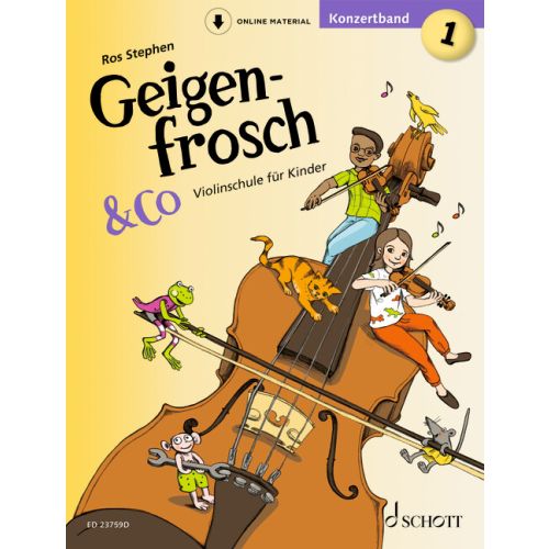 Geigenfrosch & Co ist eine unterhaltsame und trotzdem kleinschrittige Geigenmethode für Kinder ab 5 Jahren. Das Repertoire umfasst eine breite Palette von Stilrichtungen, von klassischer Musik über Volksmusik bis hin zu Weltmusik und Popmusik.