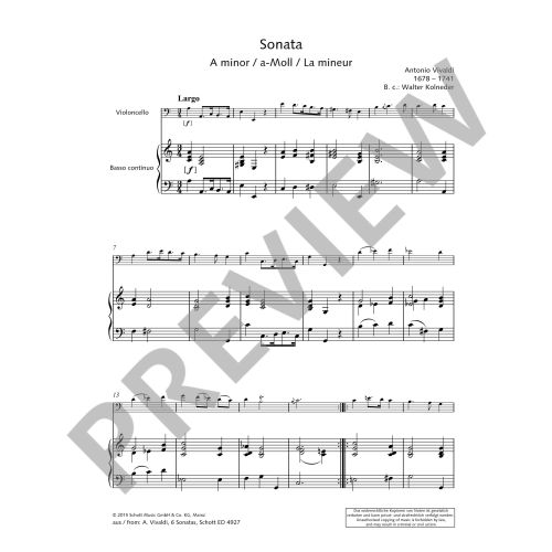 Der Sammelband enthält 13 leichte bis mittelschwere Stücke, die sich gut für Unterricht und Konzert eignen. Neben den beliebten barocken Sonaten, wie von Vivaldi oder de Fesch, gibt es reizvolle unbekanntere Kompositionen, z. B. von Lanzetti oder Zocarini. Sonaten von J. Chr. Fr. Bach und Stephen Paxton sowie von Beethoven vertreten das klassische Zeitalter. Aus der Romantik gibt es Mendelssohns Lied ohne Worte op. 109, Faurés Sicilienne op. 79 sowie zwei kleine Stücke von Goltermann.