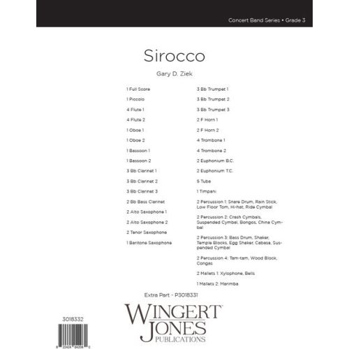 A sirocco is a Mediterranean wind that originates in the Sahara Desert, capable of reaching hurricane velocities. This piece reflects the changing nature of this dry wind; it starts with a brief and violent flurry, then settles down, depicting the still, hot desert morning. As the desert comes to life, the music evolves into a 6/8 world-music groove, enhanced by colorful percussion effects. Building and growing in intensity, the raging sandstorm powers over the landscape to a climactic close.