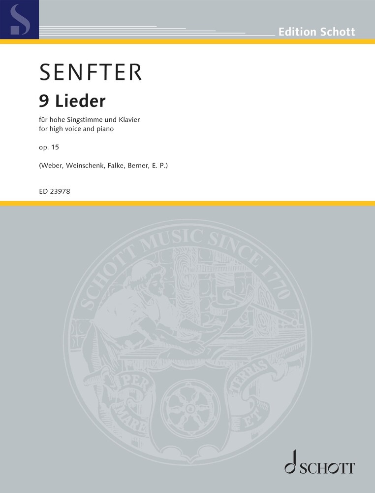 Johanna Senfter (1879–1961) was a gifted composer who, like many of her contemporaries, was largely forgotten after the rise of the Second Viennese School. Rooted in the late Romantic tradition and inspired by her mentor Max Reger, her 9 Lieder op. 15, composed around 1913, offer expressive, finely crafted vocal miniatures for intermediate singers.