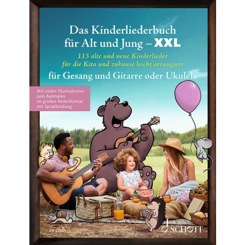 Alle Lieder sind einfach zu begleiten mit der Gitarre oder der Ukulele und enthalten die benötigen Akkordgriffe und Begleitmuster. Zudem gibt es eine Vielzahl von Illustrationen zum Ausmalen sowie dutzende Anleitungen zum Mitmachen, ob in der Kita oder mit den Kindern zuhause. Ein Inhaltsverzeichnis nach Themen wie Schlaflieder, Geburtstagslieder oder Bewegungslieder rundet das Buch ab. Eine Playlist mit allen Songs gibt es bei Spotify oder Apple Music (113 Kinderlieder für Alt und Jung).