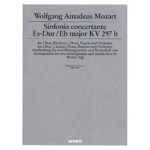 The circumstances of the origin of Sinfonia concertante in Eb major (KV 297 b) are disputed; it was probably created in Paris in April 1778 for four famous solo instrumentalists of the Mannheim Court Chapel. In his arrangement, Werner Egk included and extended the concertante aspect: In 1981, a few weeks before his death, he arranged the work for two oboes, clarinets, horns, bassoons each and double-bass so that now a solo quartet is opposed to a tutti quartet. For wind ensembles, this piece is a valuable addition to their repertoire, for Mozart lovers it is a charming view from an unfamiliar perspective.