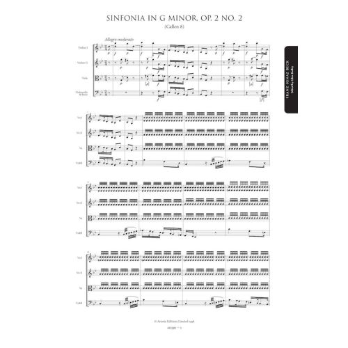 Franz Beck (1734-1809), the most talented of Johann Stamitz’s pupils, led a colourful and eventful life. Fleeing Mannheim after fighting a duel with a jealous rival, he moved to Venice. After eloping with his patron’s daughter, he finally ended up in France where he lived for nearly fifty years. Beck’s symphonies have long been admired by scholars for their technical resource, startling use of bold harmonies and dramatic intensity. Dating from the mid-1750s, the Op.2 symphonies are small in scale but very impressive in effect, ideal works for chamber orchestras ensembles in search of fresh and exciting repertoire.