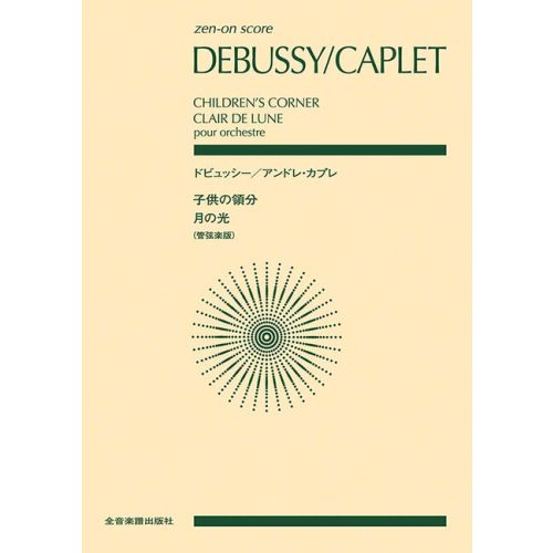 This score, arranged for orchestra by his friend, the composer André Caplet, contains all six pieces of the piano suite „Children’s Corner“, which he composed for his beloved daughter Chouchou, as well as „Clair de Lune“ from the Suite Bergamasque. This orchestral repertoire has received increasing performances in recent years, not only in Europe and the United States, but also in Japan. This is the first score to be published in Japan.