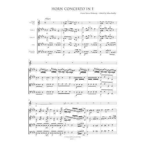 Franz Xaver Pokorny (1729-1794) enjoyed a long and productive career in the service of Count Philipp Karl of Oettingen-Wallerstein and later at the court of the Princes of Thurn und Taxis in Regensburg. He was a prolific composer of symphonies although his music did not circulate as widely as that of many of his contemporaries working in Vienna and Mannheim. One distinctive feature of these works is the elaborate writing for the horns. Pokorny also composed a number of horn concertos and it is probable that these works were played at some stage by his sister Beate, a brilliant horn player who performed with great success at the Concert Spirituel in Paris in 1780. The present work, written in 1755, conforms in broad detail with the established mid-18th-century solo concerto model. Articulated periodic phrases are succeeded by phases of baroque-style fortspinnung; textures, although thin, are more fully scored than in many concertos of the period. The solo part is demanding and calls for both excellent technique and stamina from the player. Pokorny’s consideration for the soloist, however, is manifested in minor details such as the presence of odd notes for the horn in the opening ritornello of each movement to give the player an opportunity to warm up before the first solo entry.