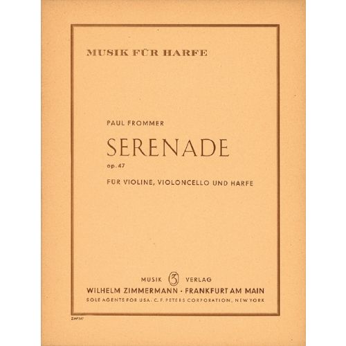 Paul Frommer war um 1900 Dirigent in Königsberg (Kaliningrad) und veröffentlichte seine Serenade 1902 bei dem auf Harfenmusik spezialisierten Verlag Carl Giessel jun. in Bayreuth, der 1913 im Musikverlag Zimmermann aufging. 1956 legte letzterer das Werk neu auf.